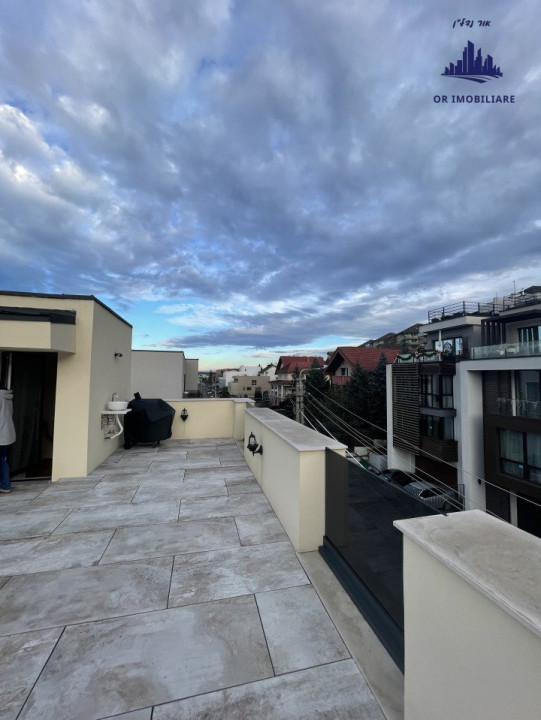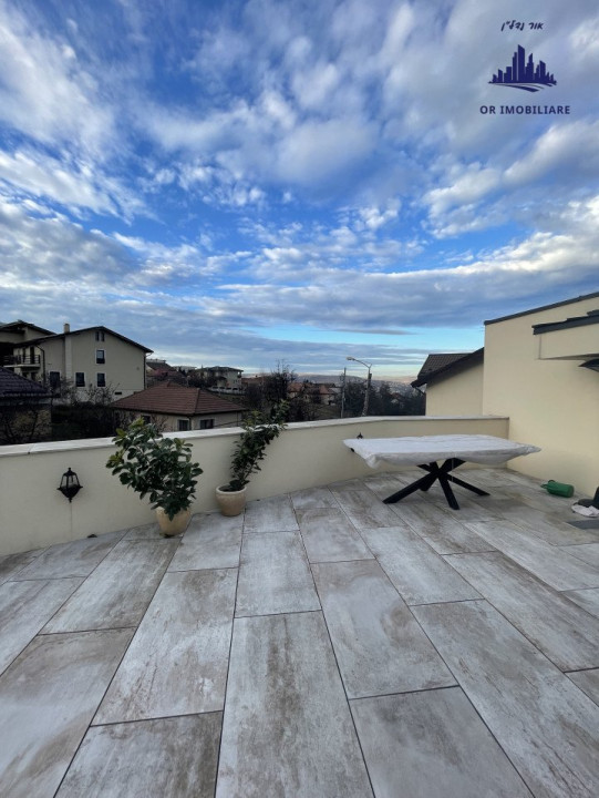 Etajul 2 dispune de o terasa de aproximativ 45 de metrii patrati, unde este si un colt amenajat pentru barbeque. Terasa ofera o panorama superba si relaxanta asupra orasului.