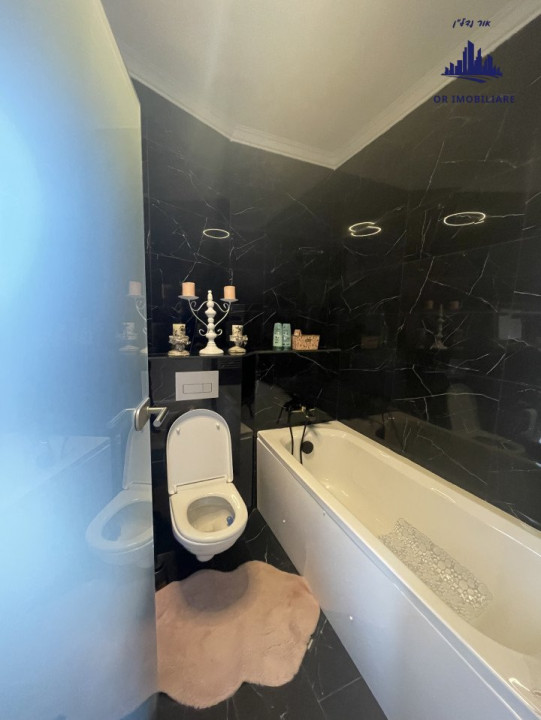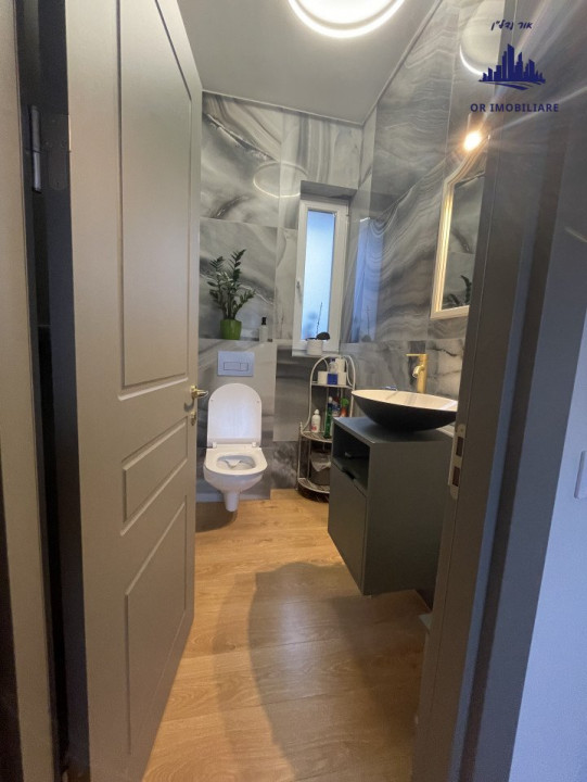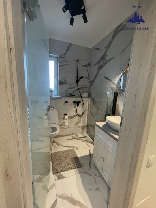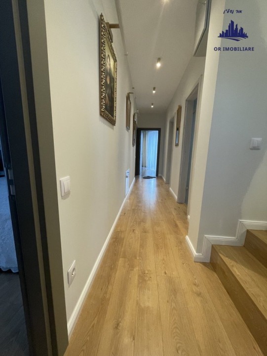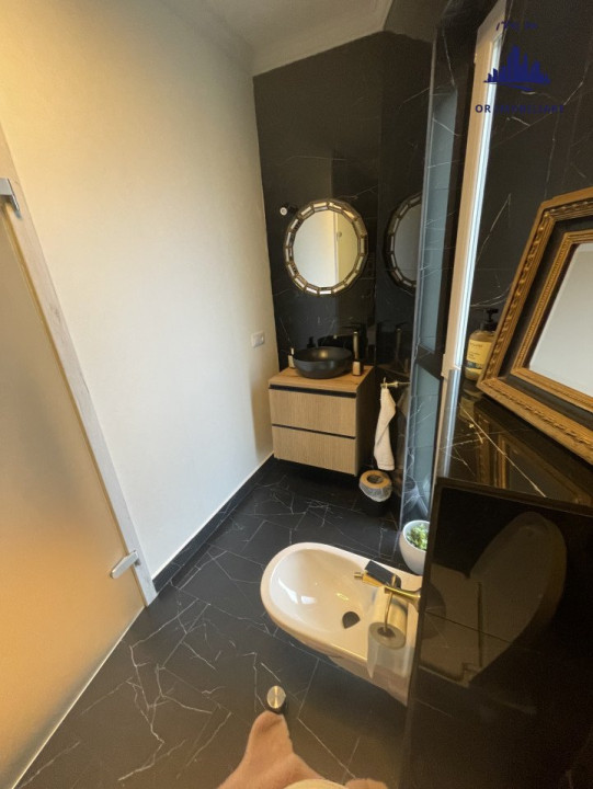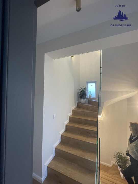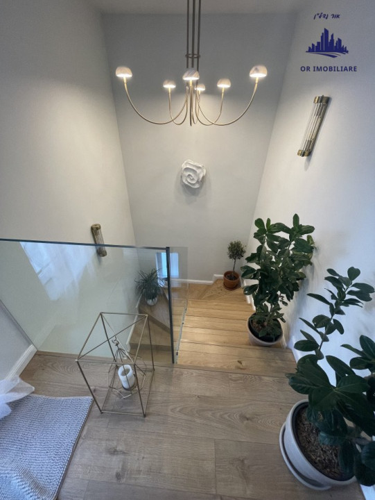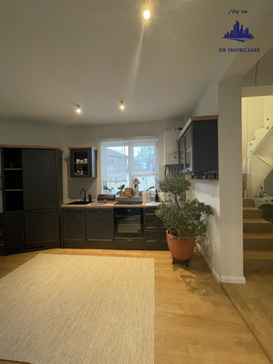 Parter - bucatarie open space cu salon, din care este iesire spre curtea din spate, toaleta de serviciu. Atat bucataria, cat si livingul sunt mobilate si utilate, cu toate electrocasnicele si vesela.