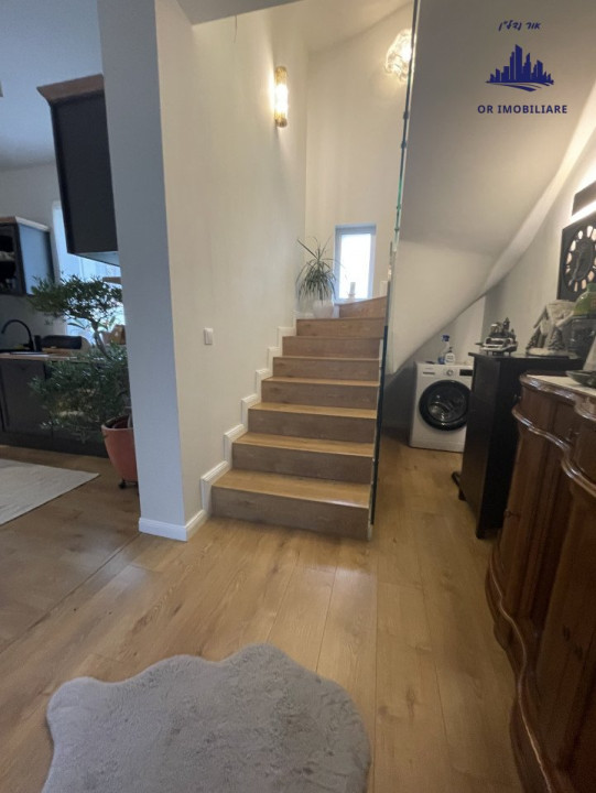 Parter: bucătărie open-space cu living și ieșire spre curtea din spate, grup sanitar de serviciu. Bucătăria și livingul sunt complet mobilate și utilate, inclusiv cu electrocasnice și veselă.