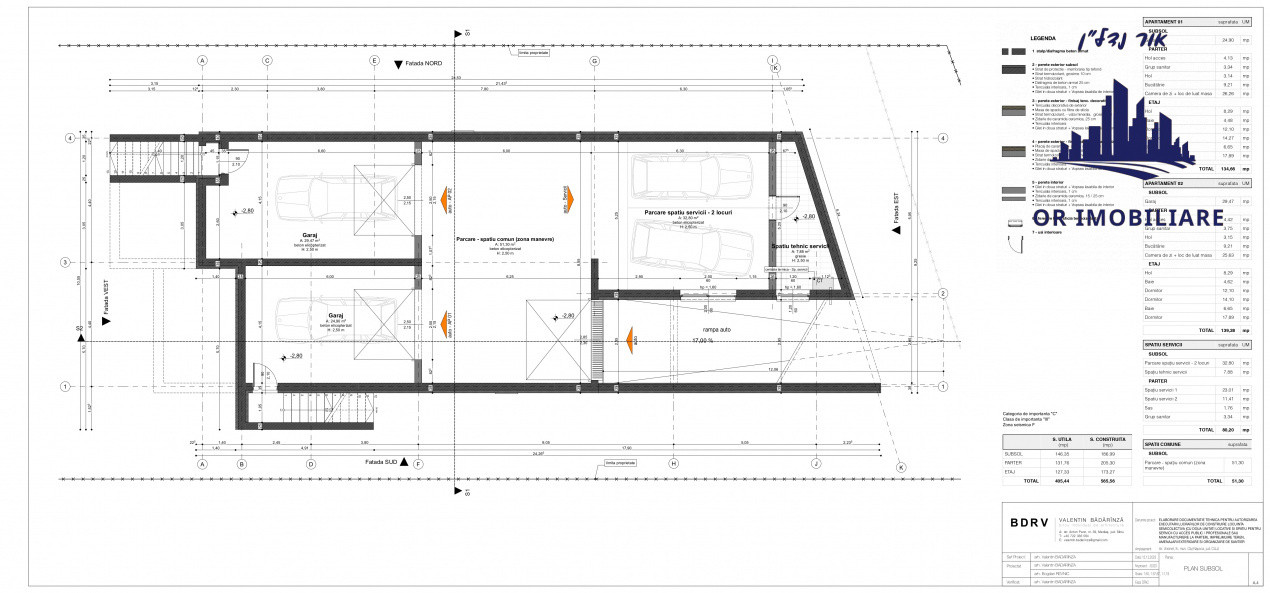 Demisol: garaj 30 mp + 50 mp spațiu tehnic, ușă de acces către terasă